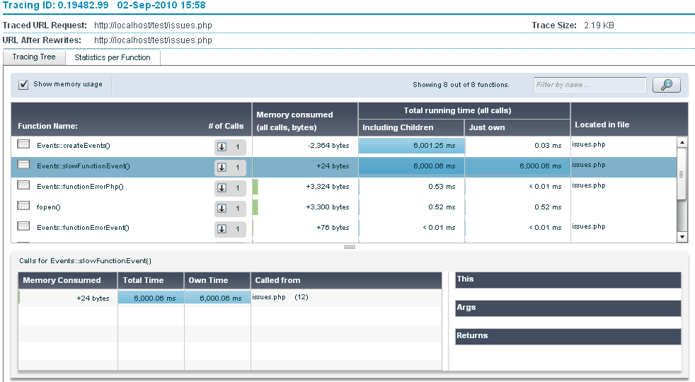 The Statistics per Function tab is a table based display that provides