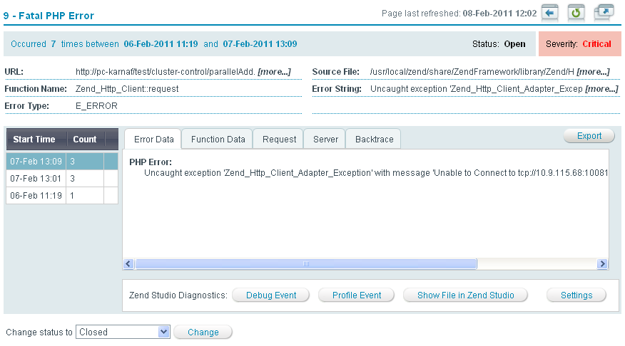 its status and diagnose the occurrence with Zend Studio for Eclipse.