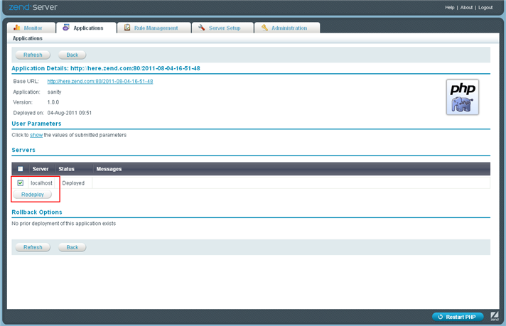 You are here: Zend Server User Guide > Tasks > Working with Deployment > Synchronizing/Redeploying an Application