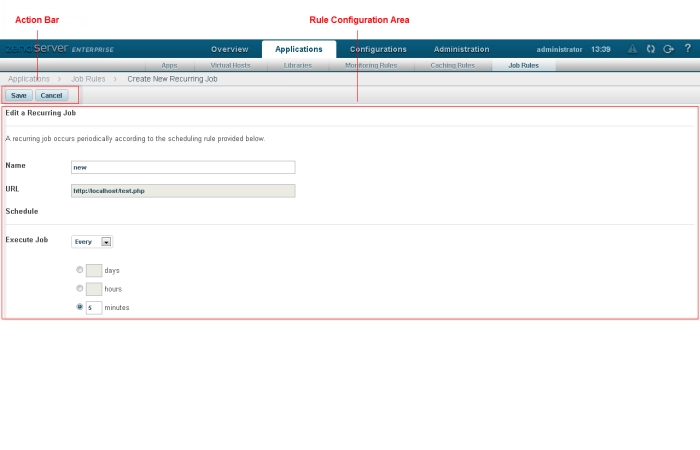 The Edit Recurring Jobs page is accessed by clicking the name of an existing job on the Job Queue or Job Rules pages, and is used to edit an existing rule.