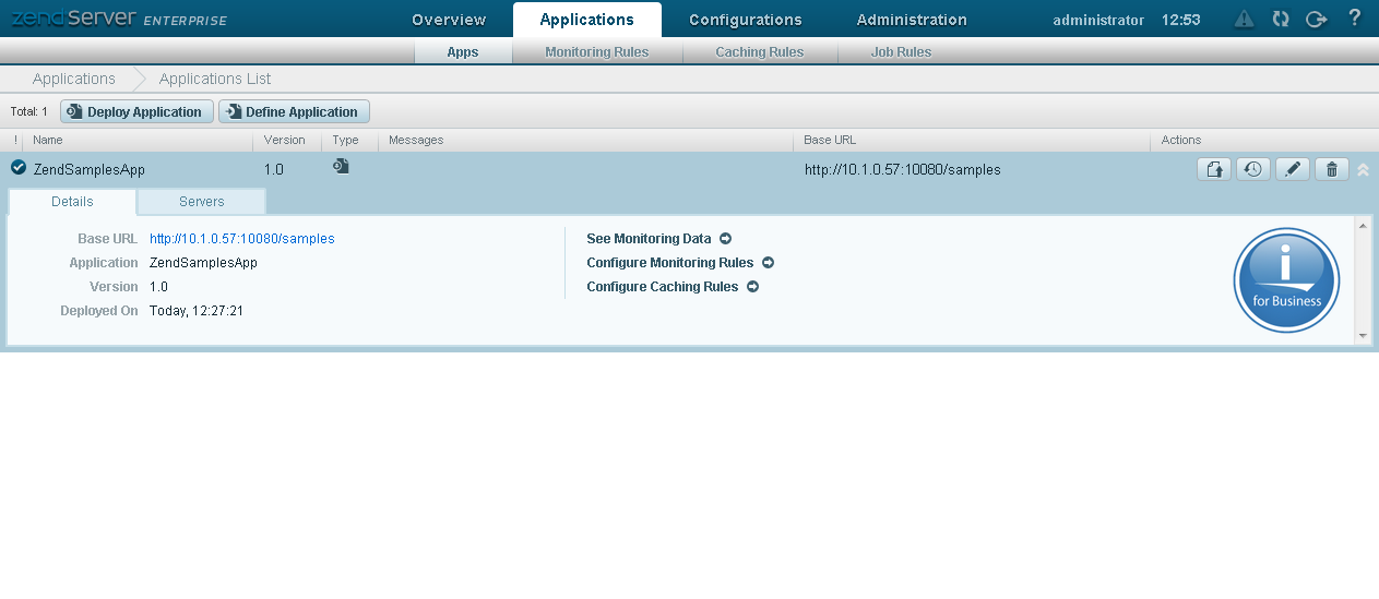 Note: If you have not yet defined the default server for deployed or defined applications, the Base URL will not be active. Go to the Administration | Settings page, and enter the default server in the General Settings area (e.g., localhost).