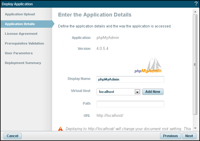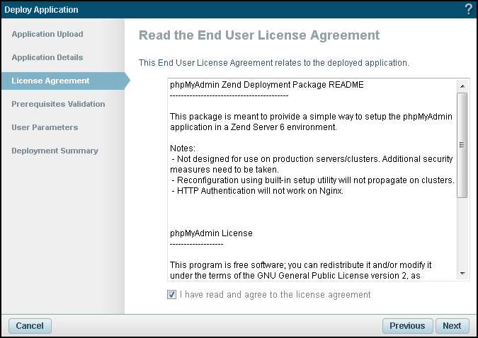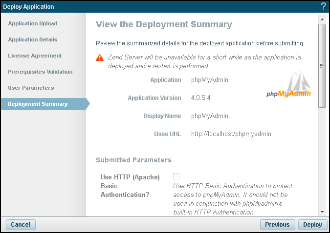 This procedure describes how to download and deploy the phpMyAdmin application package on Zend Server.