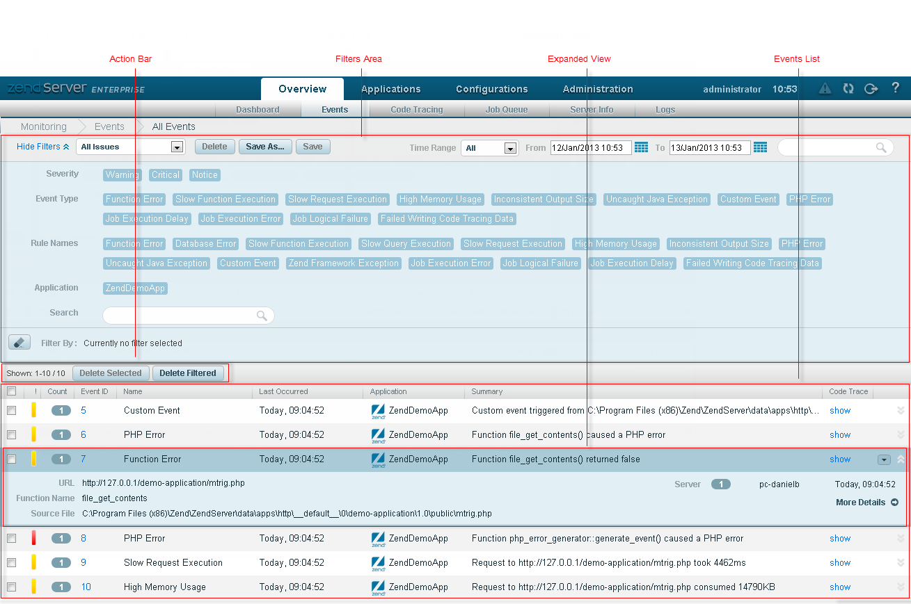 An event is a collection of runtime-related information collected by the Zend Server Monitor component. This information is collected when an event is triggered, according to the conditions defined by the Monitoring Rules.