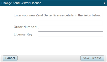 At any stage during the initial and extended trial periods, or during your license period, you can update your license details on the License page. For more information, see Registering a Zend Server License below.