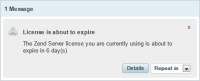 Before your Zend Server license expires, the Notification Center will notify you of the coming expiration date.