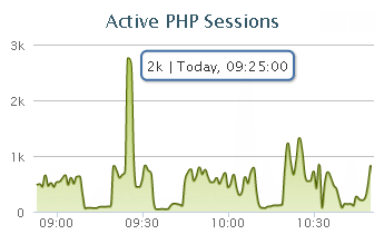 Hover over point in graph displays details (number of sessions, time stamp). Select a segment of the graph to zoom in. Filter by time range. Expand chart. |