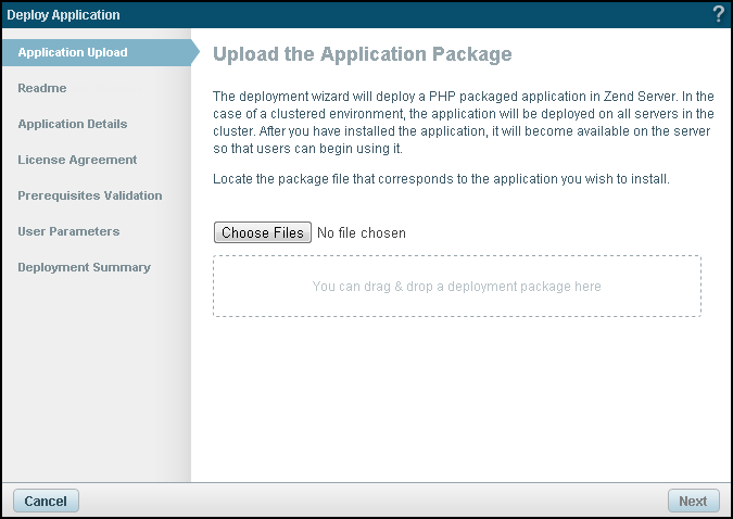 Zend Server User Guide > Tasks > Working with Applications > Deploying an Application