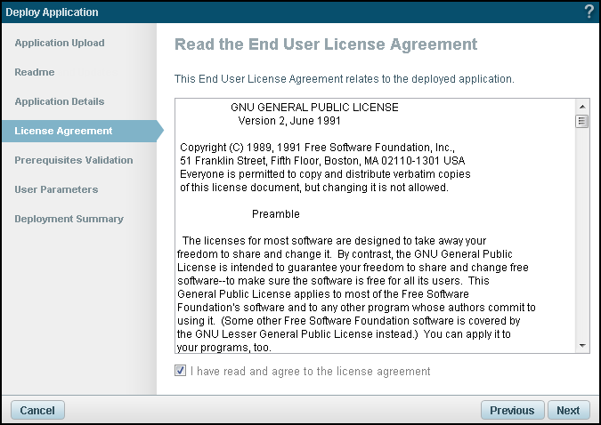 1. If you specified a EULA in your application package, the License Agreement dialog is displayed.