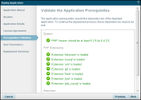 If your system does not qualify, an error message is displayed at the top of the dialog and the prerequisites in question appear in red. Click the link to open Zend Server in another tab in your browser, and then click after amending the specific dependencies.