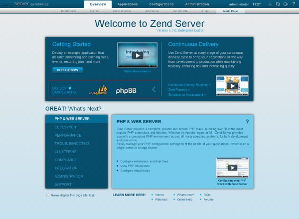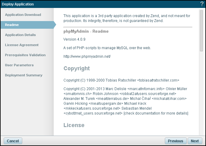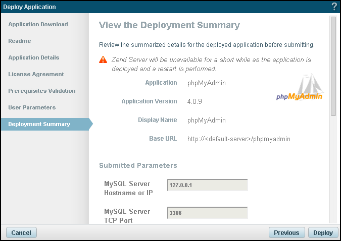 This procedure describes how to download and deploy the phpMyAdmin application package on Zend Server.