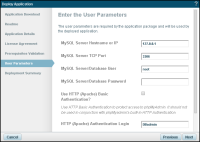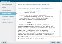Note: The base URL (or root URL) is the URL where the application is available after it has been deployed. The base URL is unique and cannot be shared between two applications, and each application is required to have a base URL. Using a pseudo URL is also acceptable. When finished, click Next. The License Agreement dialog displays.
