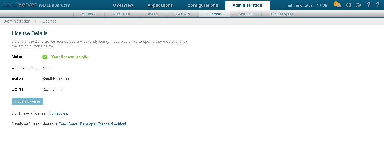 - Update your Zend Server license.|
