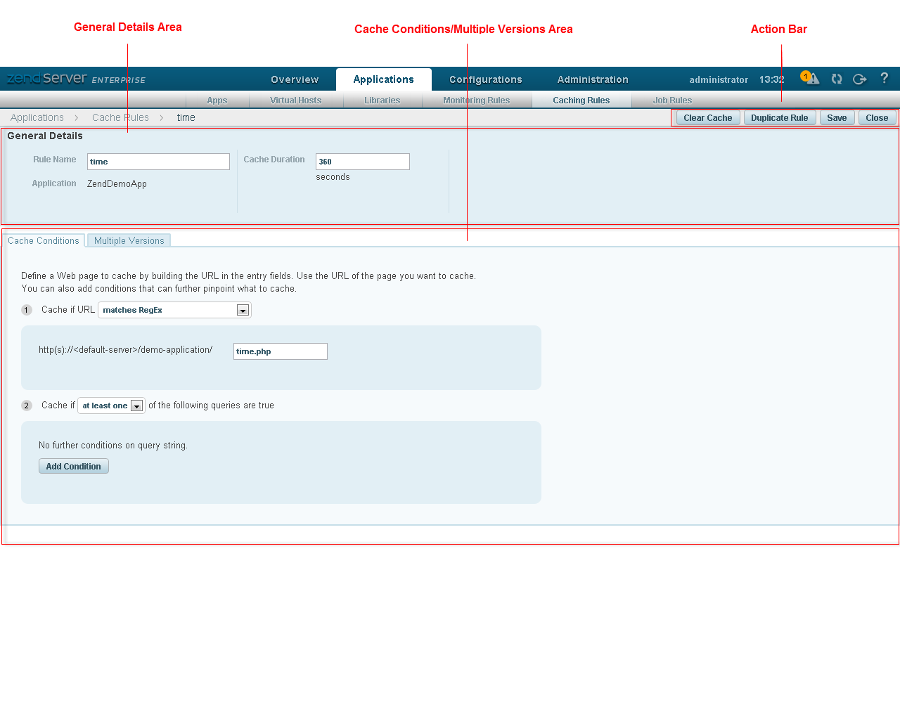 The New/ Edit Caching Rule page is accessed from the Caching Rules page, by selecting a rule from the rules list, or clicking Add Rule