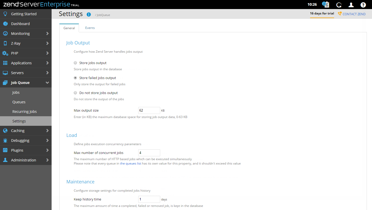 This tab allows you to configure how Zend Server handles the output for executed jobs: