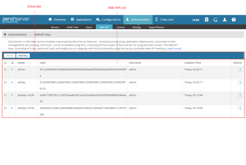 Zend Server User Guide > Touring the UI > Administration > Web API
