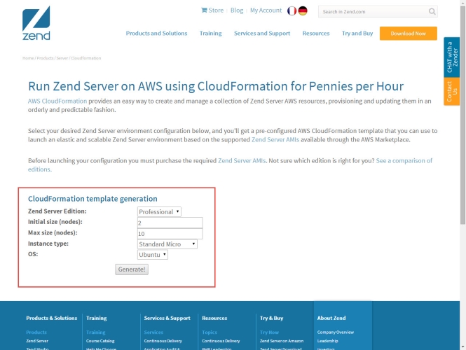 - Go to http://www.zend.com/en/products/server/cloudformation.