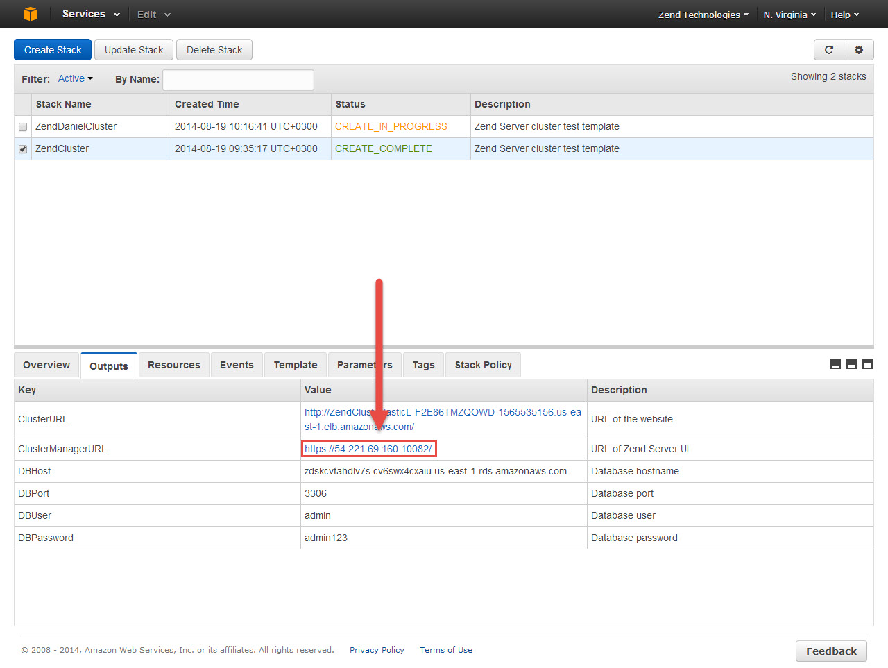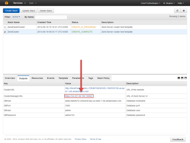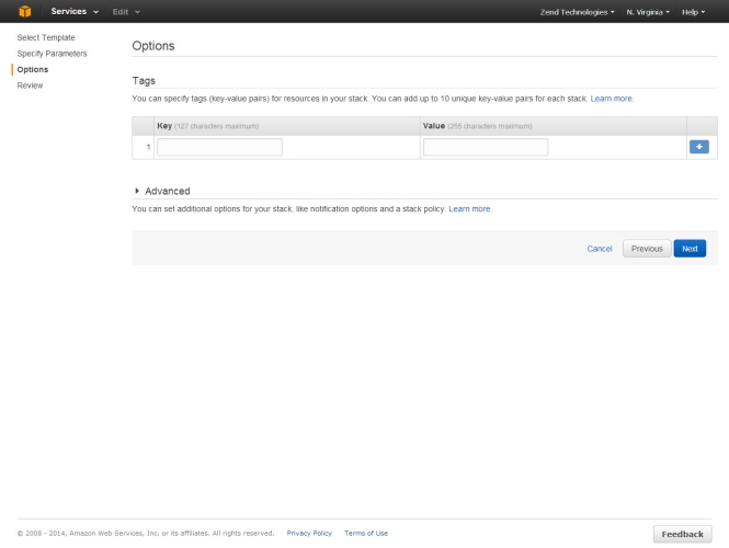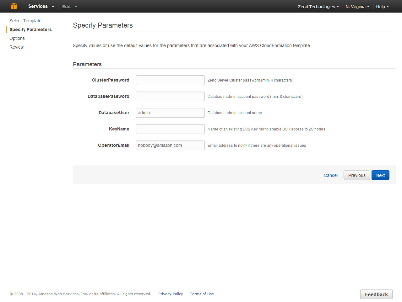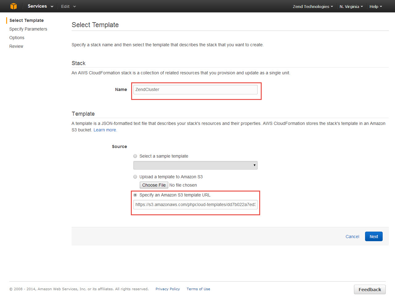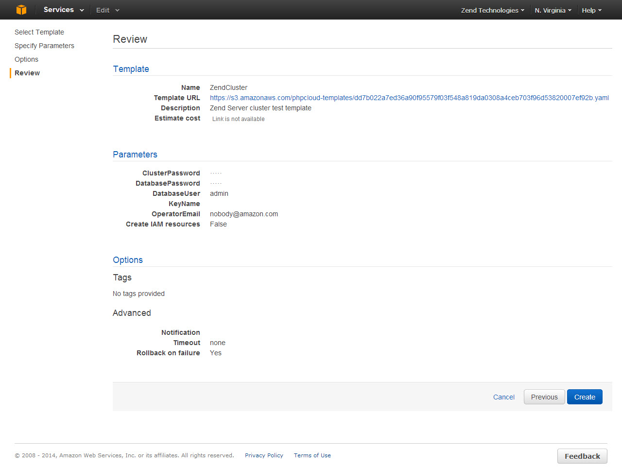 Step 2: Deploying the Zend Cluster CloudFormation Template