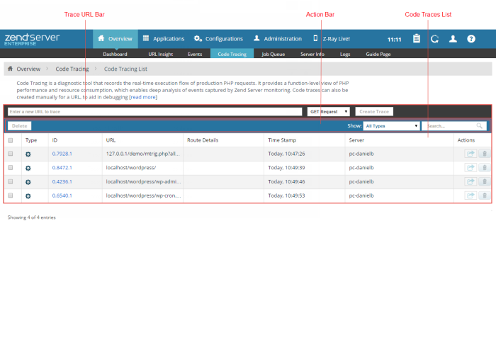 Zend Server User Guide > Touring the UI > Overview > Code Tracing