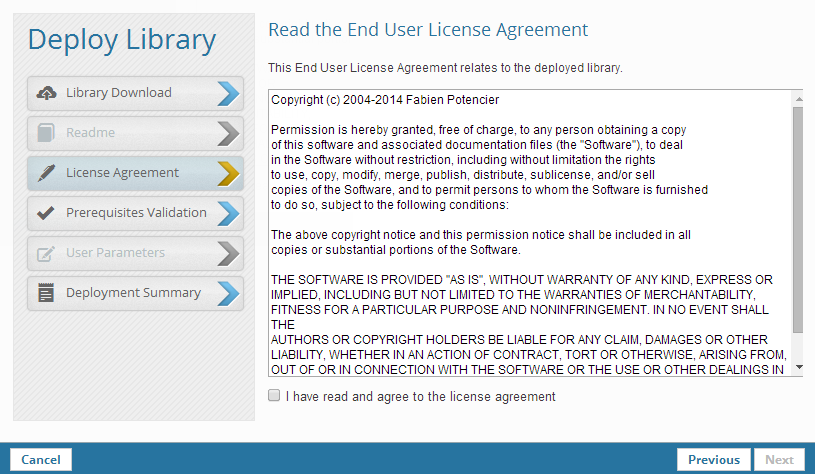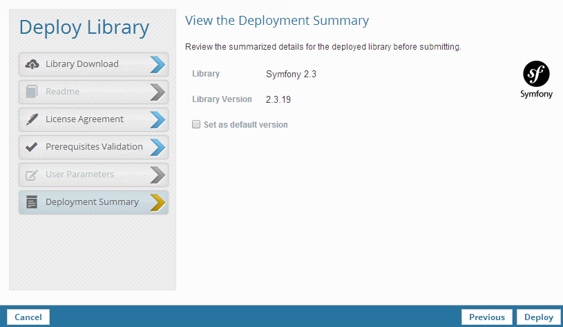 Select the Set as default version check-box to define the library as the default library version to be used by deployed applications with no specific library version call.