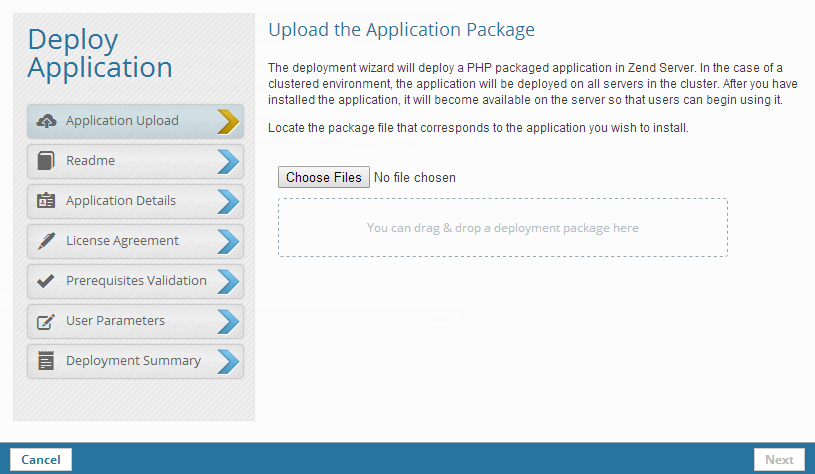 Zend Server User Guide > Tasks > Working with Applications > Deploying an Application