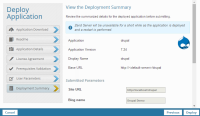 1. The Deployment Summary dialog displays the details of the application to be deployed and a summary of the parameters you have defined for the application.