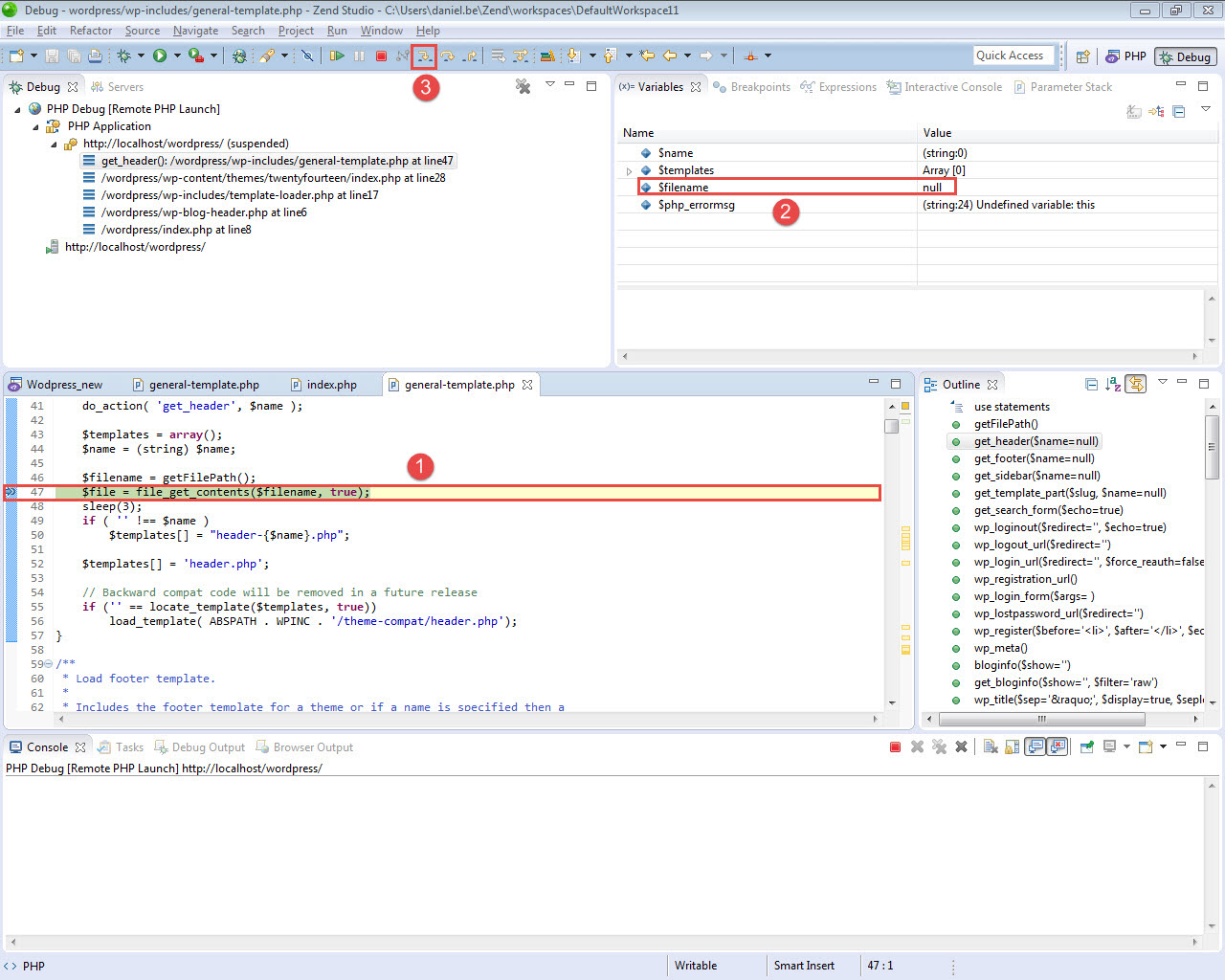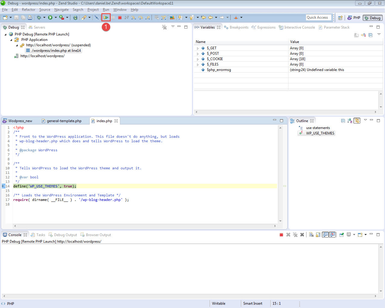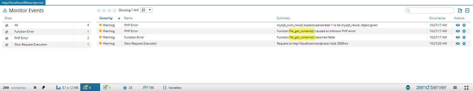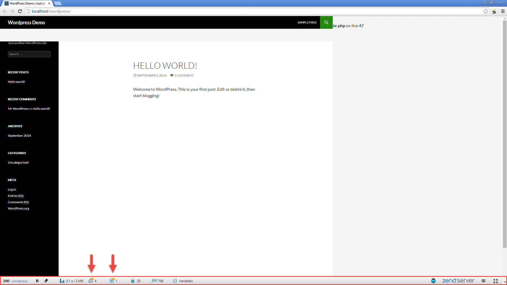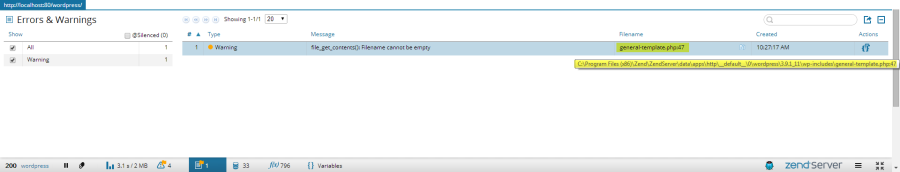 Congrats! You successfully deployed Wordpress on Zend Server. Now, let's create a project in Zend Studio from the existing application. We will then insert some sample code to simulate errors.