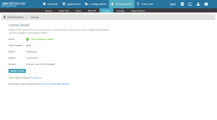 - Update your Zend Server license.|