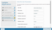 1. The parameters and values that appear in this dialog are the parameters, and their default values, which you defined in your descriptor XML file, such as usernames and passwords.