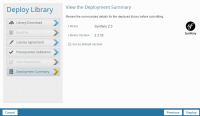 - The Deployment Summary dialog displays the details of the library to be deployed and a summary of the parameters