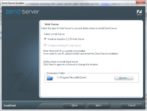 1. Select a Web server on which to install the PHP and the Installation Location, and click Next.