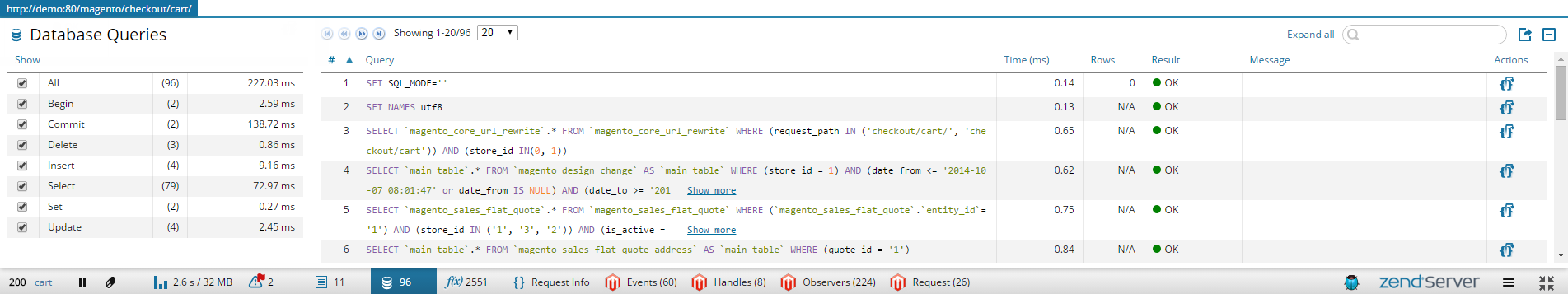 Detailed profiling of ZF1 request objects |
